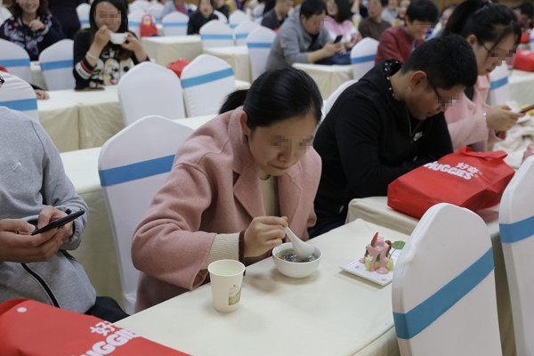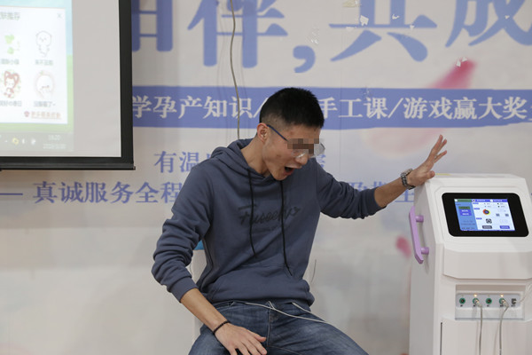 课程结束后,现场客服还为孕妈妈们准备了由合肥白领安琪儿妇产医院行政主厨与中医营养师精心搭配烹调的特色营养餐。在品尝完营养餐后,就到了准爸爸们的分娩阵痛体验环节。准爸爸为爱挑战,亲身体验女性分娩时的痛苦,用行动来为妻子加油。