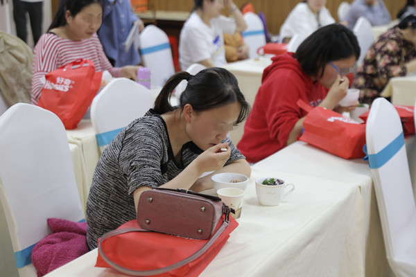 课程结束后,就到了准爸爸们的分娩阵痛体验环节。准爸爸为爱挑战,亲身体验女性分娩时的痛苦,用行动来为妻子加油。而现场客服也为在场准孕妈妈们准备了由合肥白领安琪儿妇产医院行政主厨与中医营养师精心搭配烹调的特色营养餐。